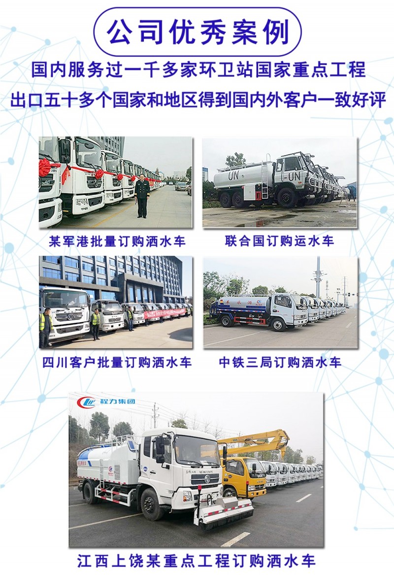 特別說明:程力灑水車全系產(chǎn)品全國范圍內(nèi)都可以送車上門,客戶滿意后再付清余款。聯(lián)系電話:15072966622 周經(jīng)理