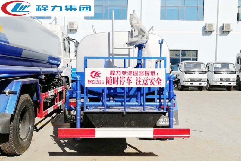 上裝配置:罐體有效容積6-10立方,罐體采用國標(biāo)Q235碳鋼,罐體厚度4mm,自吸自排水泵,帶前沖裝置,后灑裝置,左右側(cè)噴裝置,尾部帶有安全操作平臺,帶消防接口,自流口,兩根輸水管,尾部綠化高炮,綠化高炮可調(diào)節(jié)直沖,大雨,中雨,毛毛雨霧,可以連續(xù)調(diào)節(jié),360度旋轉(zhuǎn);
