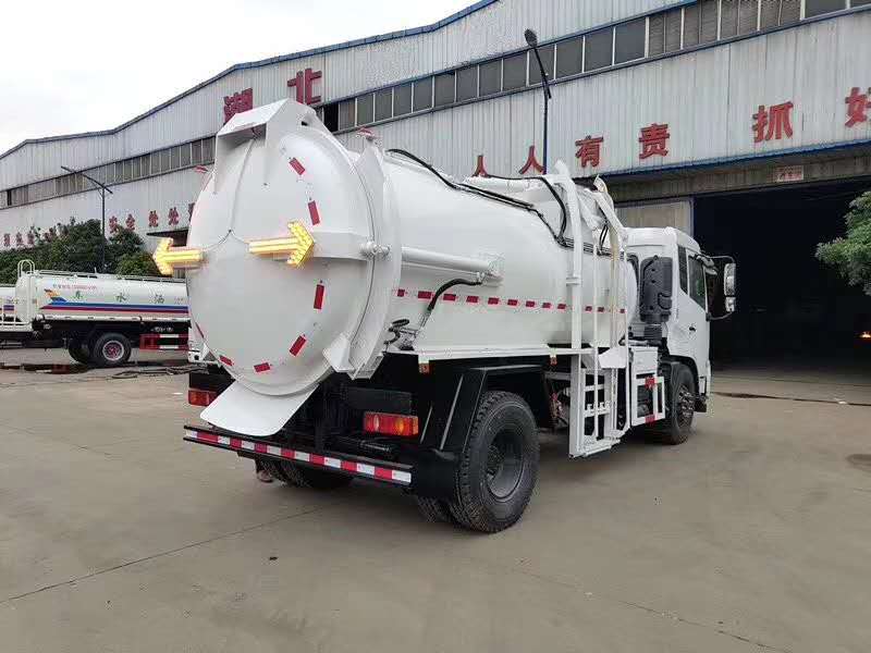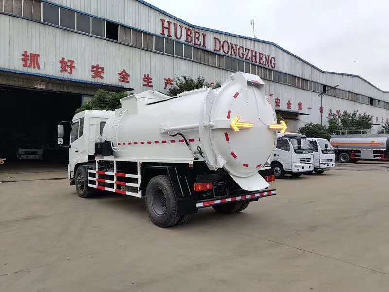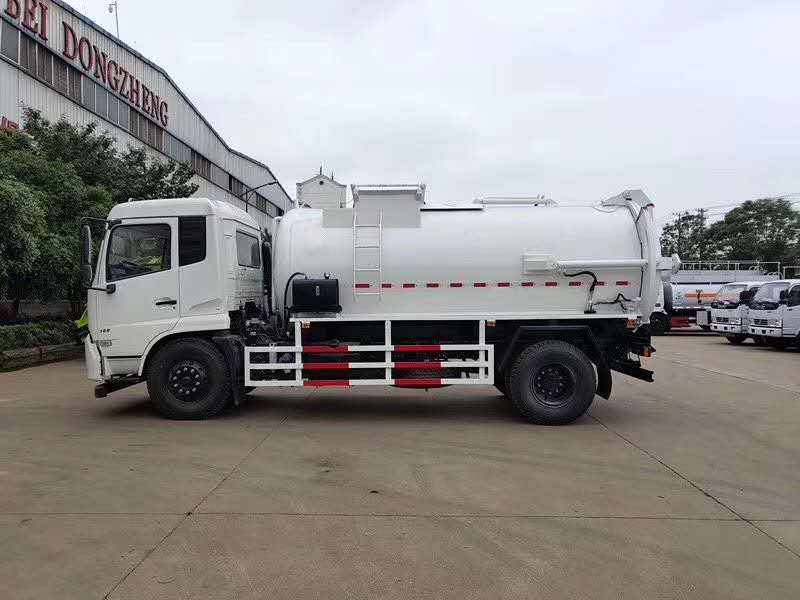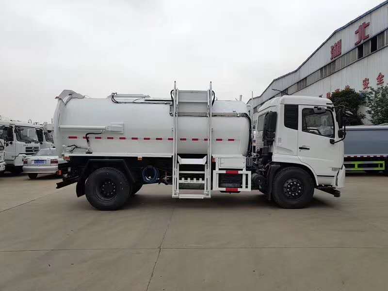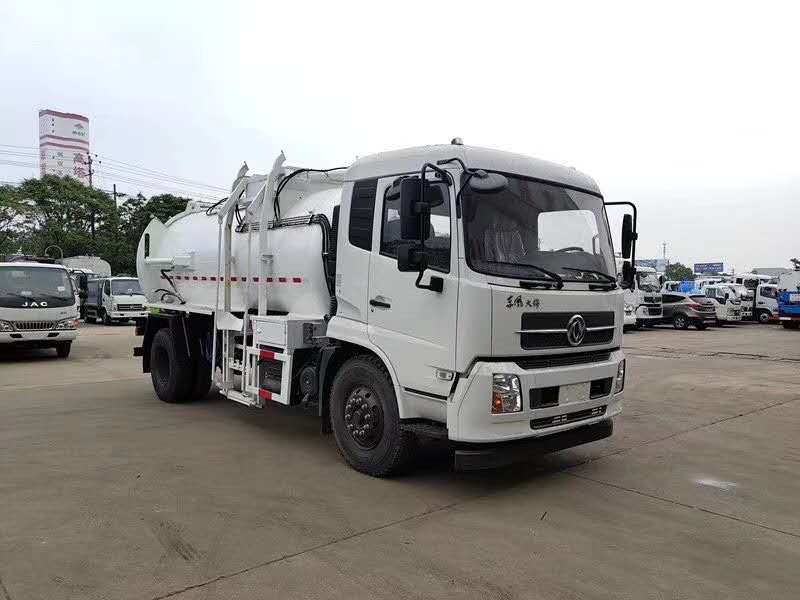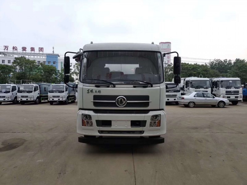 東風天錦餐廚垃圾車,搭配康明斯180馬力國五發動機,東風六檔箱,9.00R20鋼絲胎,軸距4500mm,原廠空調,正規東風GB7258-2017新規底盤;上裝采用Q345高強度錳鋼板或304不銹鋼罐體制作,罐體容積:10立方米,大流量液壓泵,大流量手自一體多路換向閥,可編程PLC電控系統帶無線遙控器操作,污水廂,帶壓縮擠壓功能,帶清洗泵自潔系統,后蓋液壓開啟,后蓋帶液壓鎖緊并具有防誤操作。
