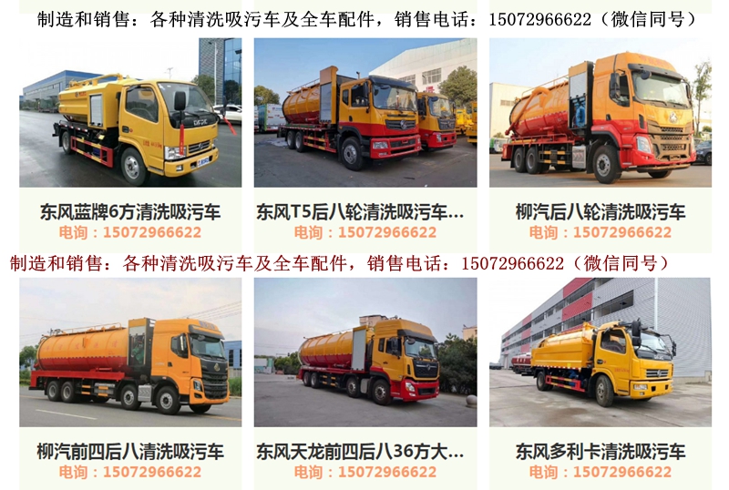 清洗吸污車導購:東風多利卡清洗吸污車(10方),東風天錦清洗吸污車(15方),江淮清洗吸污車,東風天龍雙橋清洗吸污車,東風天龍前四后八清洗吸污車。