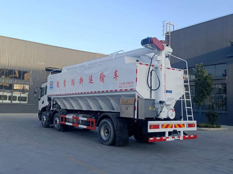 上裝液壓配置:上裝罐體采用優質鋼板制作,罐體內分為4個倉,可獨立控制各分倉卸料順序和速度,整車3條絞龍,通過變速箱帶動取力器取力后由液壓泵帶動液壓馬達使絞龍工作,全液壓卸料模式,頂部絞龍液壓控制舉升,可左右旋轉180°。