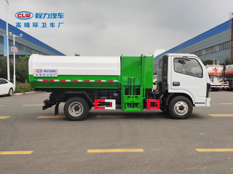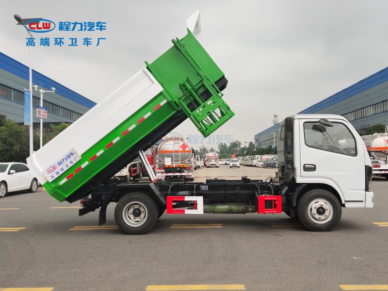 自裝卸式垃圾車(chē),也稱(chēng)掛桶垃圾車(chē),由密封式垃圾廂、液壓系統(tǒng)、操作系統(tǒng)組成。舉升油缸(2支),垃圾廂可自吊上下,上下一次循環(huán)工作時(shí)間≤50S.